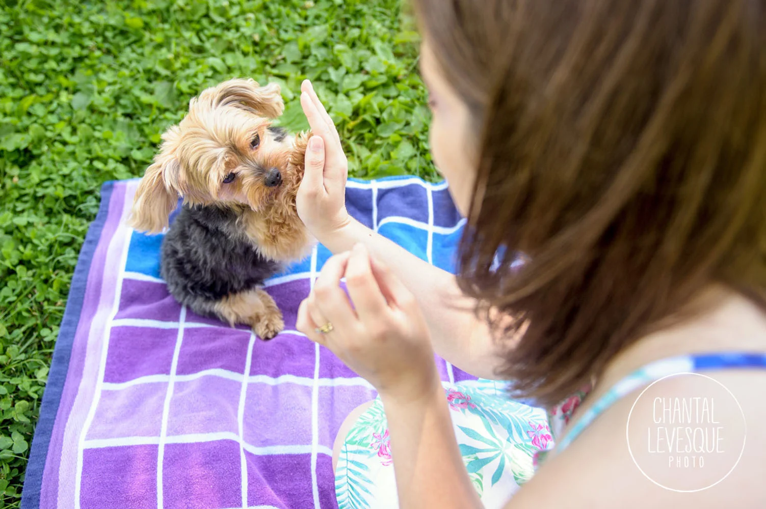 4- Le jour de la session, faire une belle marche avec son pitou… selon son niveau d'énergie. Pour un chien super actif, lui faire faire une bonne course pour qu'il dépense son surplus d'énergie. Pour un chien plus âgé ou plus calme... pas trop d'exercice avant... on veut qu'il soit alerte et en forme pour la session! Si la session est dans un lieu nouveau pour l’animal, arrivez un peu plus tout pour l’acclimater.